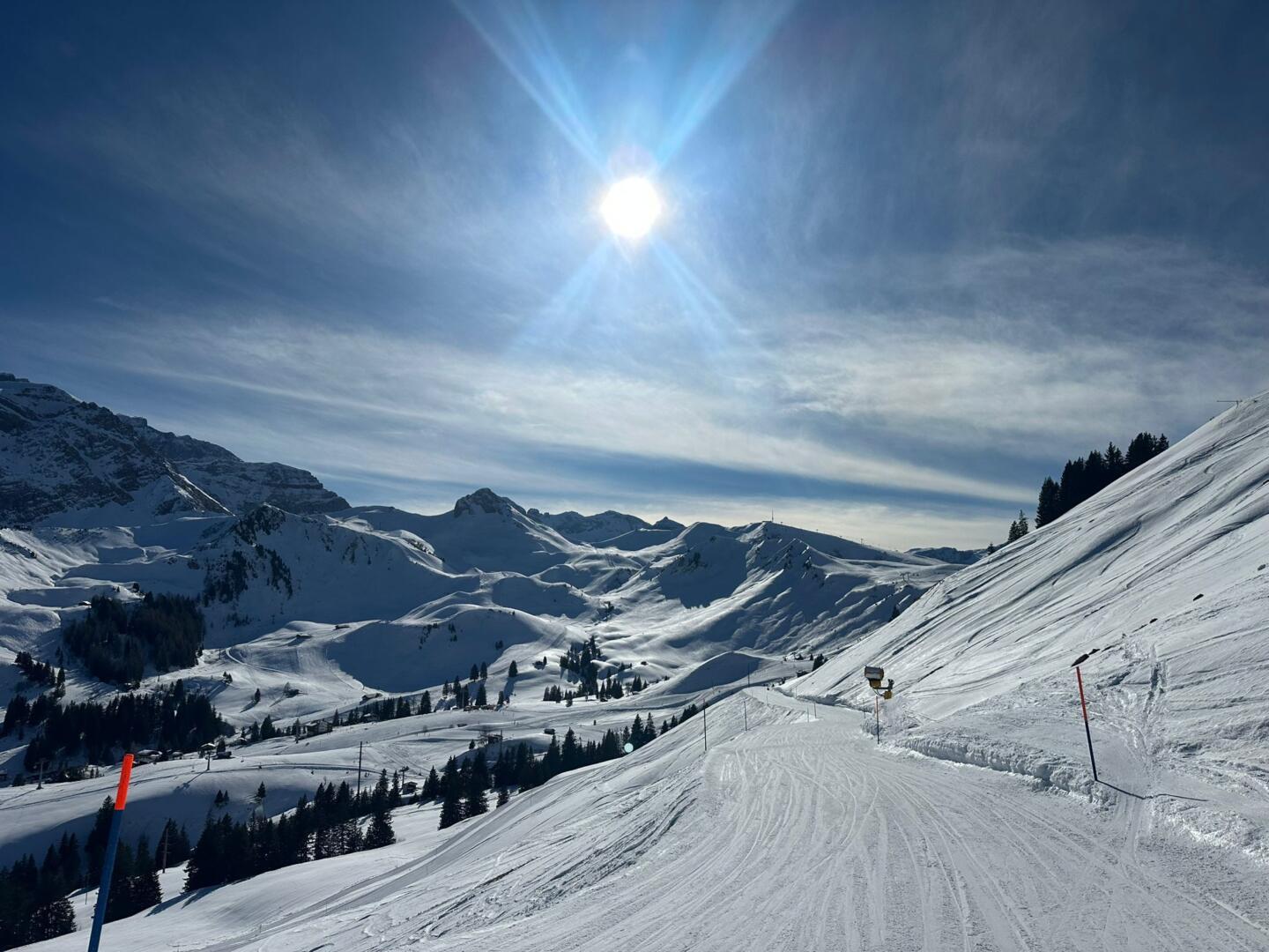 In den Tag starteten wir mit Geburtstagsmusik, weil Noelia Geburtstag hatte. Nach einem leckeren Frühstück machten wir uns bereit für die Piste. Dort verbrachten wir einen anstrengenden, aber auch grossartigen Morgen mit traumhaft schönem Wetter. Nach einem feinen Zmittag im Hahnenmoos, ging es wieder ab auf die Piste.